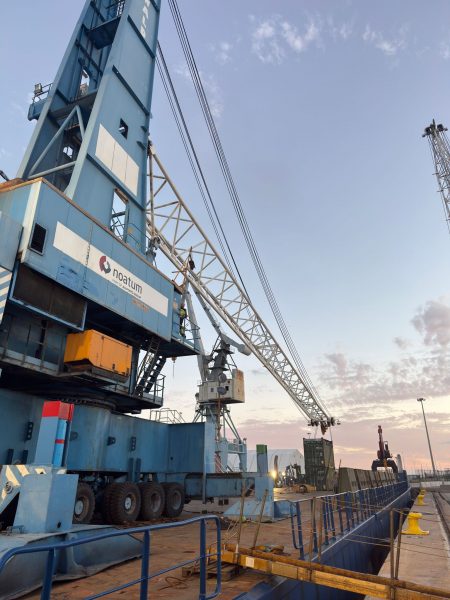 Vendita di una gru mobile portuale Gottwald di seconda mano, modello HMK 280 a TAFS di Savona, in collaborazione con LNG Cranes Solution ed organizzazione del trasporto.
