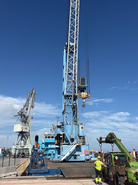 Vendita di una gru mobile portuale Fantuzzi Reggiane di seconda mano, modello MHC130, a Compagnia Portuale di Cagliari ed organizzazione del relativo trasporto.
